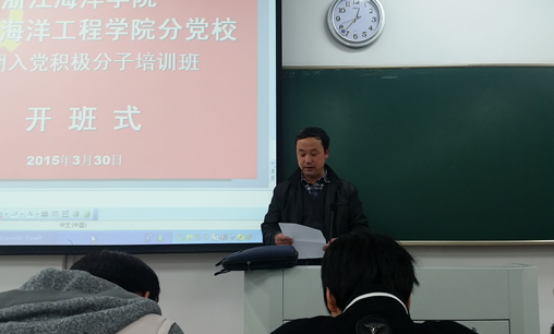 在工科楼118教室举行了船舶与海洋工程学院分党校第五期党课学习班开班典礼。开班仪式由学院组织员吴俊毅老师主持,学院党委书记冯相忠、组织委员陈庭勋参加了开班式。