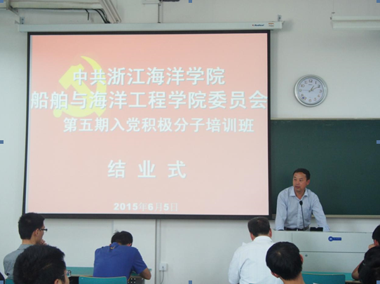 第五期党训班结业式在工科楼118教室举行。本次活动由学院党委宣传委员徐向飞老师主持,学院党委书记冯相忠及组织员吴俊毅老师出席并进行了讲话。