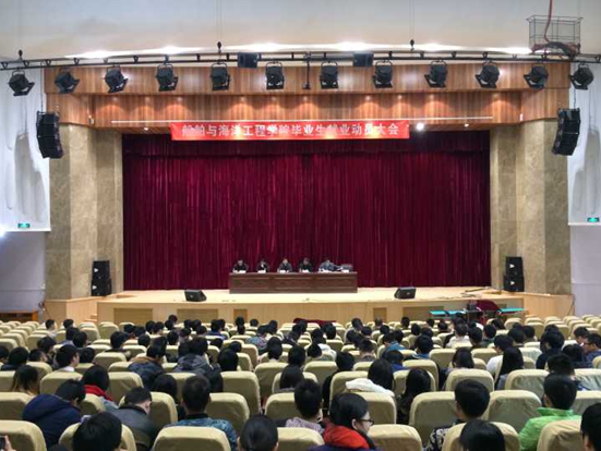 学生就业情况,希望每一位毕业生既能够明确社会压力的存在,又能够积极应对。同时强调学校、学院都非常重视学生的就业工作,通过三方共同努力,形成合力,继续做好16届毕业生的就业工作。随后,船舶系副主任王伟、机械系教授朱从容以及电气系副主任李林分别从专业学科的角度对就业及工作情况做了详细的分析和介绍。此外,就业辅导员徐双迪向大家介绍了学院关于毕业生就业方面的各项政策,包括就业奖励细则、“三方协议”等事项。最后,冯相忠书记对本次大会进行总结。他指出,就业形势固然严峻,但大家一定要做好自我定位,树立自己的就业目标,本着“先就业,再择业”的原则,主动出击,发挥自身的积极性,相信一定可以找到心仪的工作。