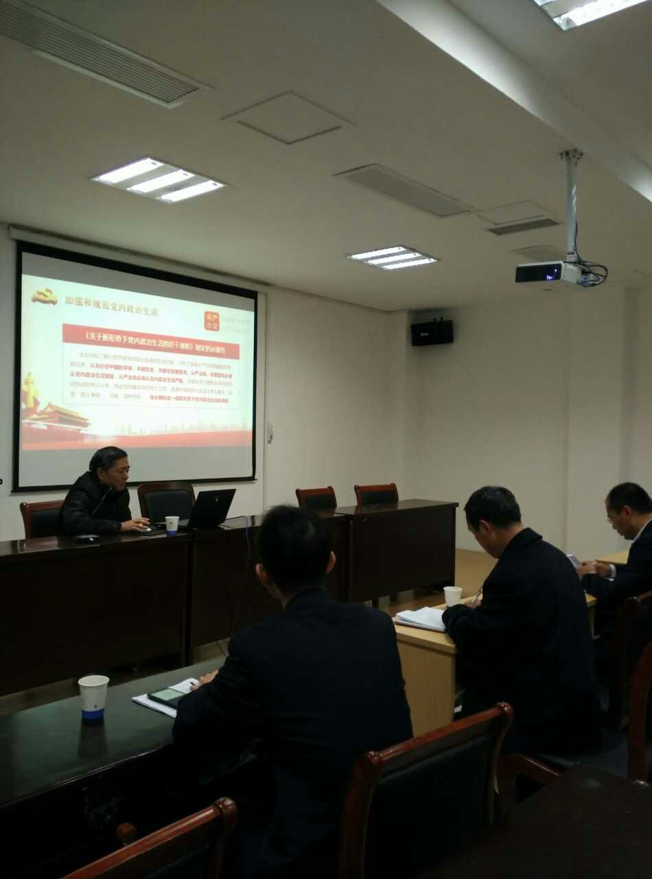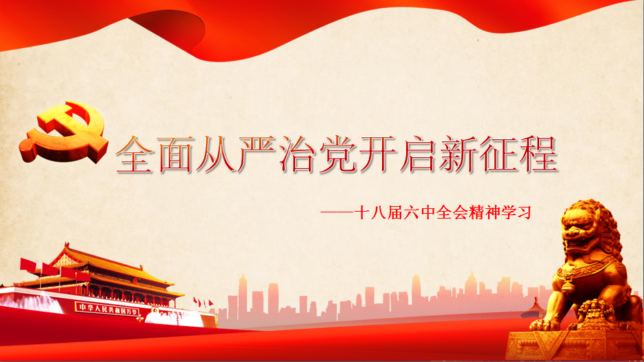 作了《全面从严治党、开启新征程--十八届六中全会精神学习》的专题报告,报告由七个部分组成,分别从十八届六中全会主题及议程、加强和规范党内政治生活、加强党内监督、会议给领导干部画出的红线,会议为全面从严治党作出的重大贡献以及《准则》、《条例》的新提法和新亮点等层面系统深入、全面精确地对十八届六中全会精神进行了解读与学习。