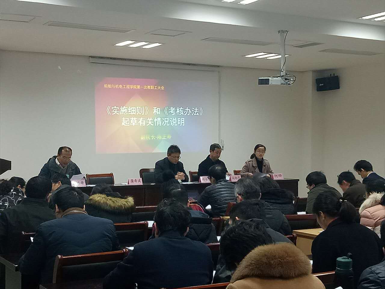 12月27日上午,船舶与机电工程学院第一届教职工大会在工科楼119举行。大会由学院党委副书记何晔主持。院长刘全良,党委书记冯相忠,副院长龚希武、陈正寿及船机学院全体教职工出席大会。