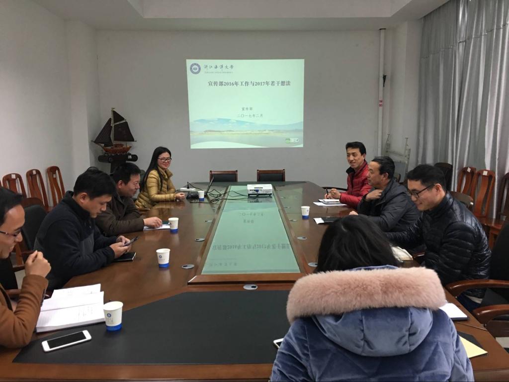 调研2017年宣传工作。陈部长以图例鲜明、数据翔实的PPT样式,全面生动地介绍了学校2016年宣传工作总结和2017年宣传计划,并结合工科学院的自身特点、亮点与重点对学院具体工作开展进行了设计与指导,强调学院要围绕学校中心工作,加强意识形态教育和理论政治学习,强化高校立德树人,培养德才兼备的高质量涉海工科人才的主旨目标;结合学院现有宣传成果与特色,进一步设计凝练富有竞争力,可持续发展的校园文化品牌;同时围绕高水平师资引进、博士点培育建设、工程教育论证等标志性工作,加大宣传工作力度,营造良好氛围导向,不断提升学院的综合办学实力和社会影响力。