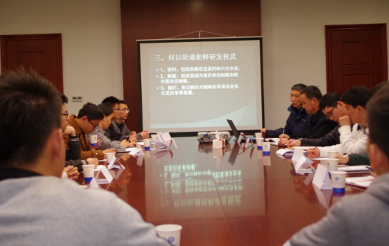 会上,学校周克非老书记旁征博引,以简明的语言从朝鲜为何要研发核武、国际社会为何反对朝鲜研发核武、何以阻遏朝鲜研发核武、国际上处理核问题的方法、六方会谈何以停止以及我国政府持何种立场态度等六个方面深入解析了“朝核”问题及半岛乱局。在解答完六个问题后,周克非老师还就同学们关心的美国对亚太地区的战略、中俄关系以及中朝关系等问题进行了交流,深入浅出,幽默风趣的话语引发了阵阵掌声。