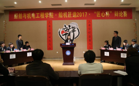 11月18日晚,船舶与机电工程学院“匠心杯”辩论赛决赛在杨存国二号报告厅举行。叶福相、雷玲玲、郑航等担任评委。