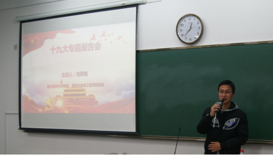 为深入贯彻落实党的十九大精神,12月22日中午,船舶与机电工程学院于教学楼333举办了党的十九大专题报告会,此次报告会由校团委副书记祝捍皓老师主讲。