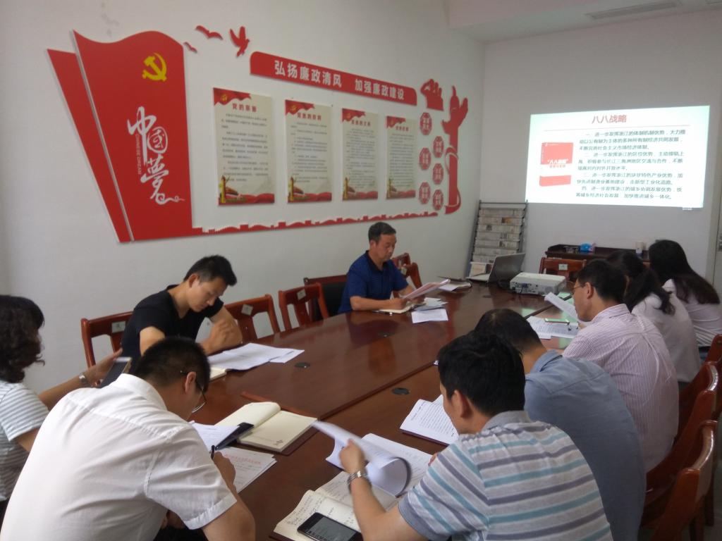 首先,学院党委书记冯相忠为各支部书记上一堂关于“八八战略”的党课,带领大家重温了“八八战略”的具体内容和要求。冯相忠在党课中讲解到:“八八战略”是习近平总书记在浙江工作时亲自谋篇布局的大手笔、亲自开篇破题的大文章,是引领浙江发展的总纲领、推进浙江各项工作的总方略,是中国特色社会主义理论在浙江的具体化。各位党员要坚定不移沿着“八八战略”指引的路子走下去。