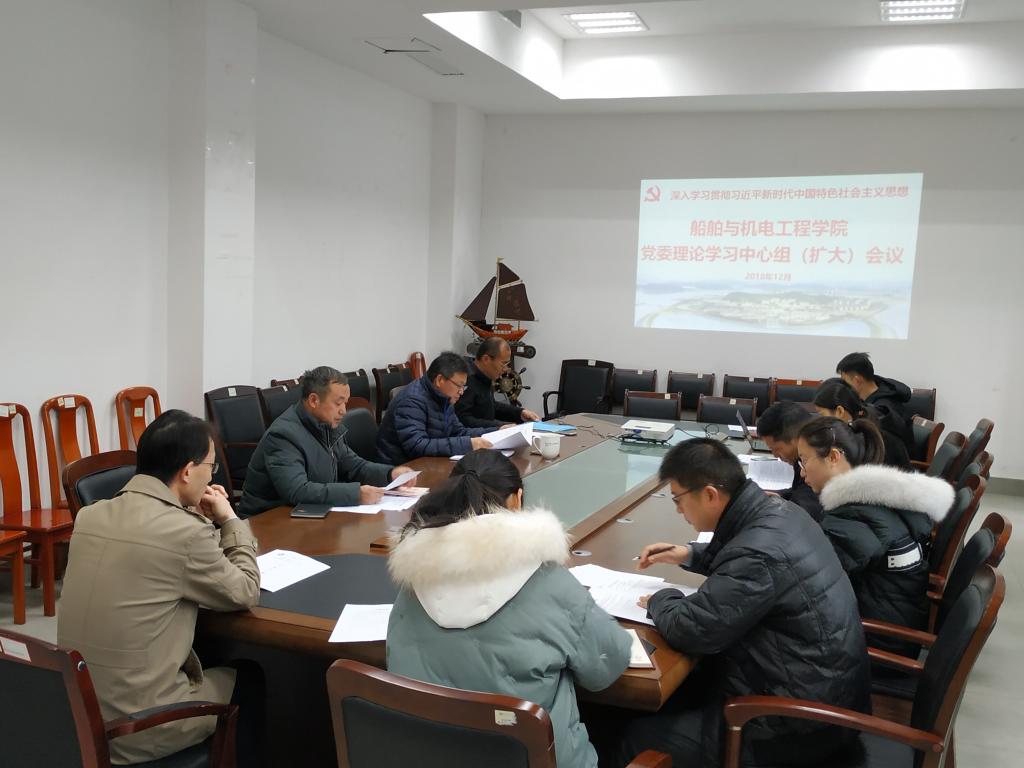 12月28日上午,船舶与机电工程学院在工科楼117党员之家召开党委理论学习中心组(扩大)会议。会议由学院党委书记冯相忠主持,学院党委委员、各党支部书记参加会议。