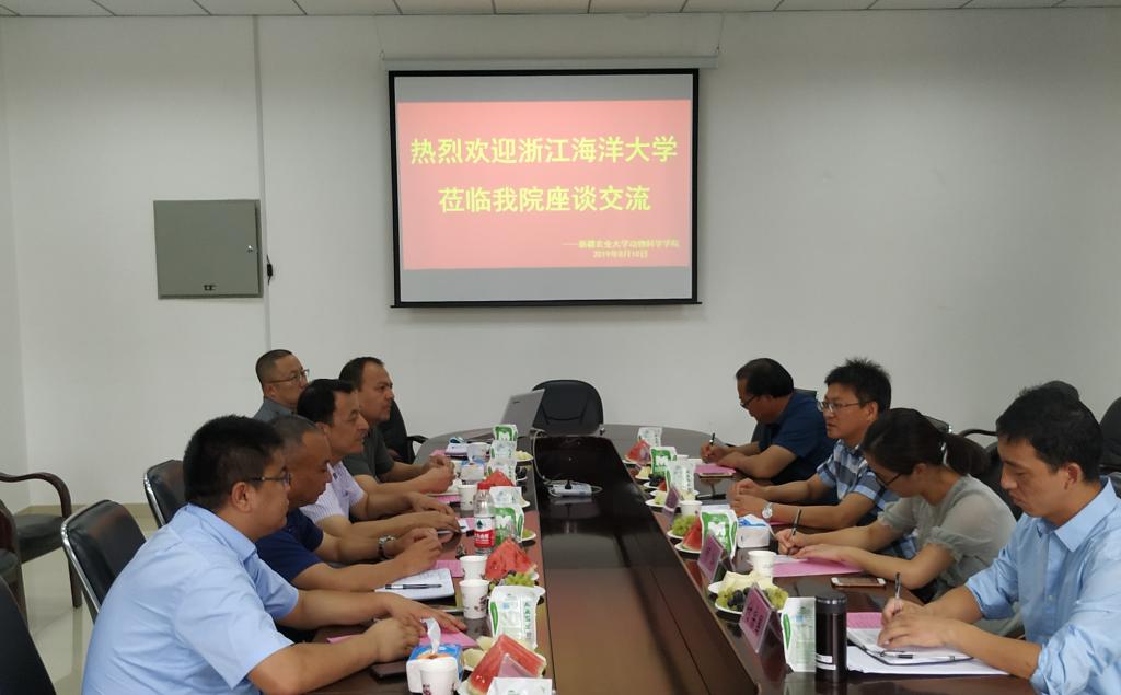8月10日上午,刘全良院长一行来到新疆农业大学动物科学学院,开展专题调研。动科学院党政主要领导、以及渔业养殖教师,团委书记、辅导员等出席交流。交流会由动科院党委书记 阿布力孜•吾斯曼教授主持,阿布力孜书记对浙江海洋大学刘全良院长一行表示热烈的欢迎。