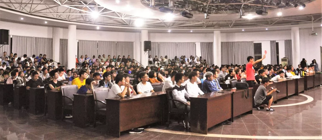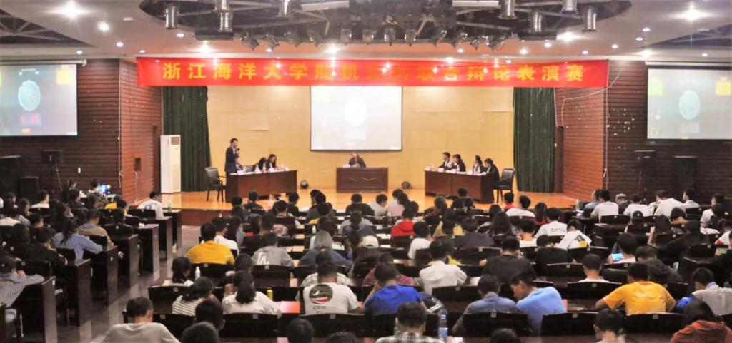 9月21日晚,定海校区活动中心举办的船舶与机电工程学院与东海科学技术学院辩论表演赛场中,选手们侃侃而谈,气势如虹,观众席座无虚席,掌声雷动。