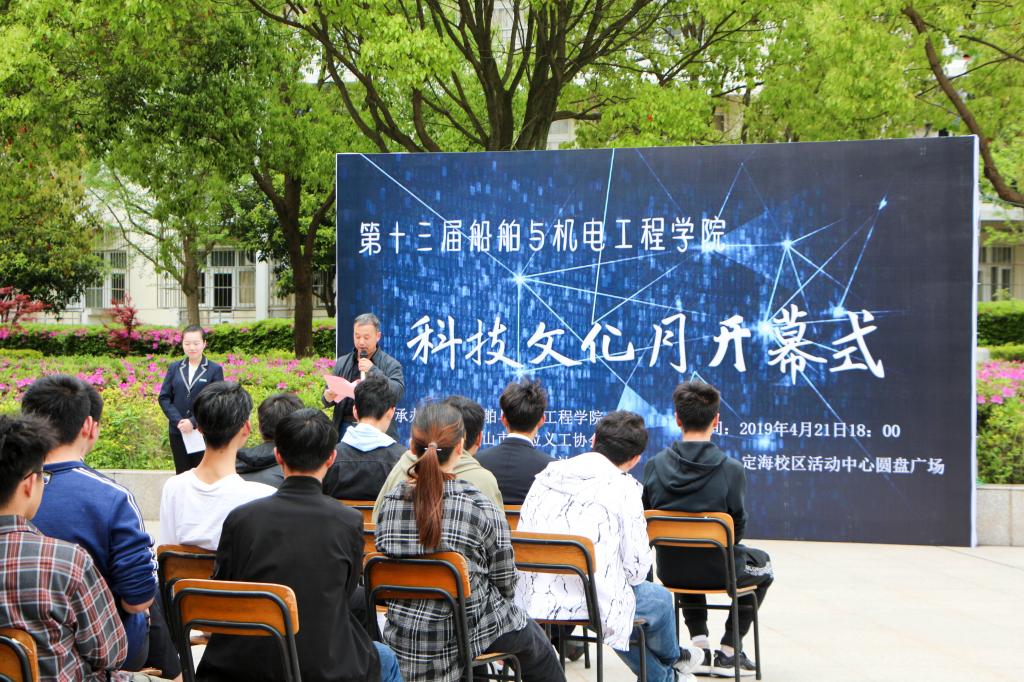 4月21日下午,第十三届船舶与机电工程学院“船机匠造”科技文化节开幕式在定海校区广场举行。院党委书记冯相忠、学院团委副书记付宗国等出席了本次开幕式。