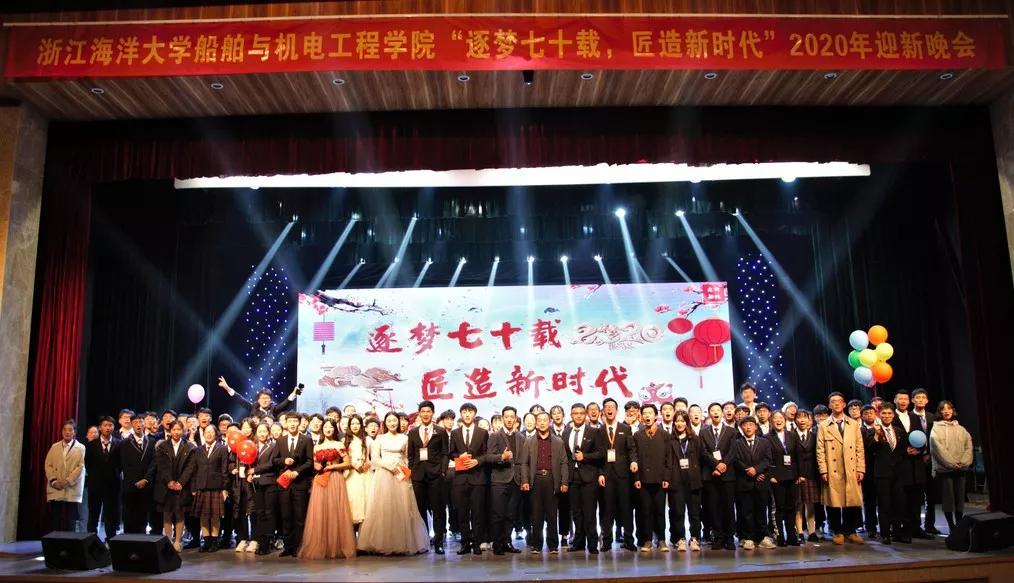 为庆祝中华人民共和国成立70周年系列活动,深入开展了“不忘初心、牢记使命”主题教育,深入学习贯彻习近平新时代中国特色社会主义思想,追求中华民族伟大复兴的中国梦,奋斗新时代。12月1日晚,船舶与机电工程学院在杨存国一号厅,举行“逐梦七十载,匠造新时代”2020年迎新晚会。