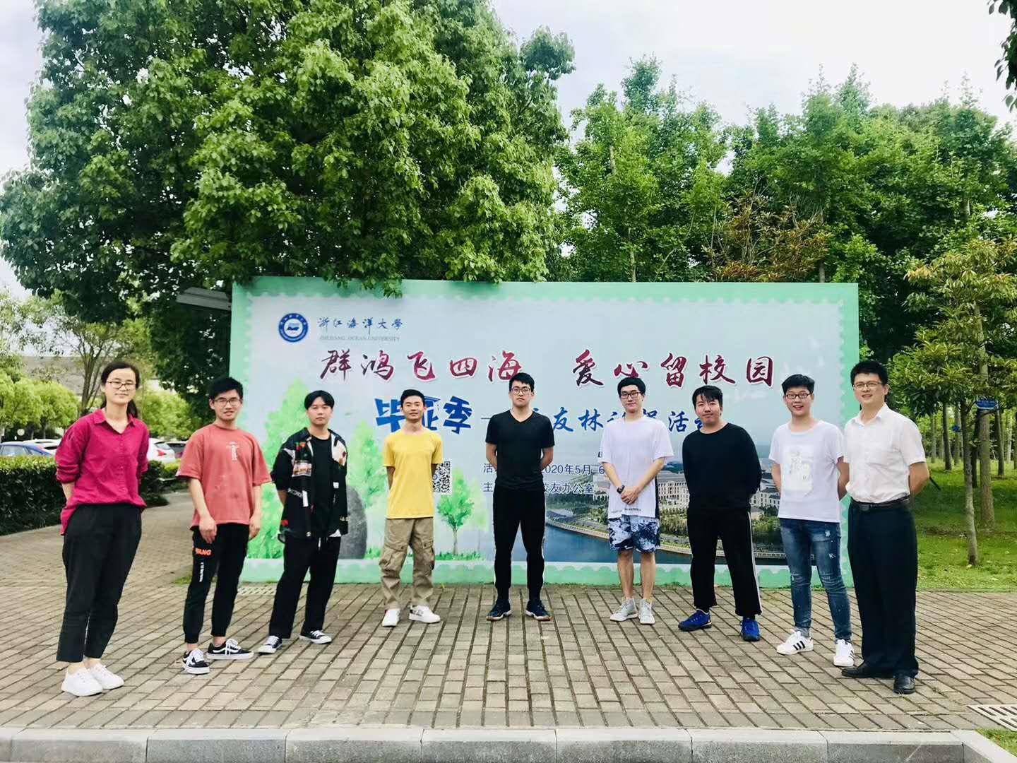 在学校校友林举行2020届毕业生校友树认捐活动,学校校友办张宇星、黄芳,学院党委副书记何晔、学工办主任朱增晖出席了本次活动,学工办辅导员、2020届毕业生代表参加了此次活动。草木情深,母校情长,校友意浓……