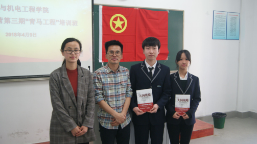 在庄严的国歌声中,开班仪式正式开始。何晔老师首先发表讲话,她指出:“青马班”旨在让学院青年学有所思,学有所得,学有所成。让每位青年在这个大有可为的年龄加强自己的思想理论水平,培养自己的家国情怀,从而实现以“青年兴”促进“国家兴”,以“青年强”实现“国家强”的目标,同时还对学员提出了刻苦学习理论,积极投身实践,认清干部身份,努力提高本领的要求。随后,学员代表徐点甸发言,她从自身角度出发,表明了青年一代在今后的学习中会怀揣伟大梦想,提高政治觉悟,勤劳务实学习,勇于在学习中创新的决心。开班仪式最后,由姜伟老师和何晔老师对学员代表进行授书仪式。