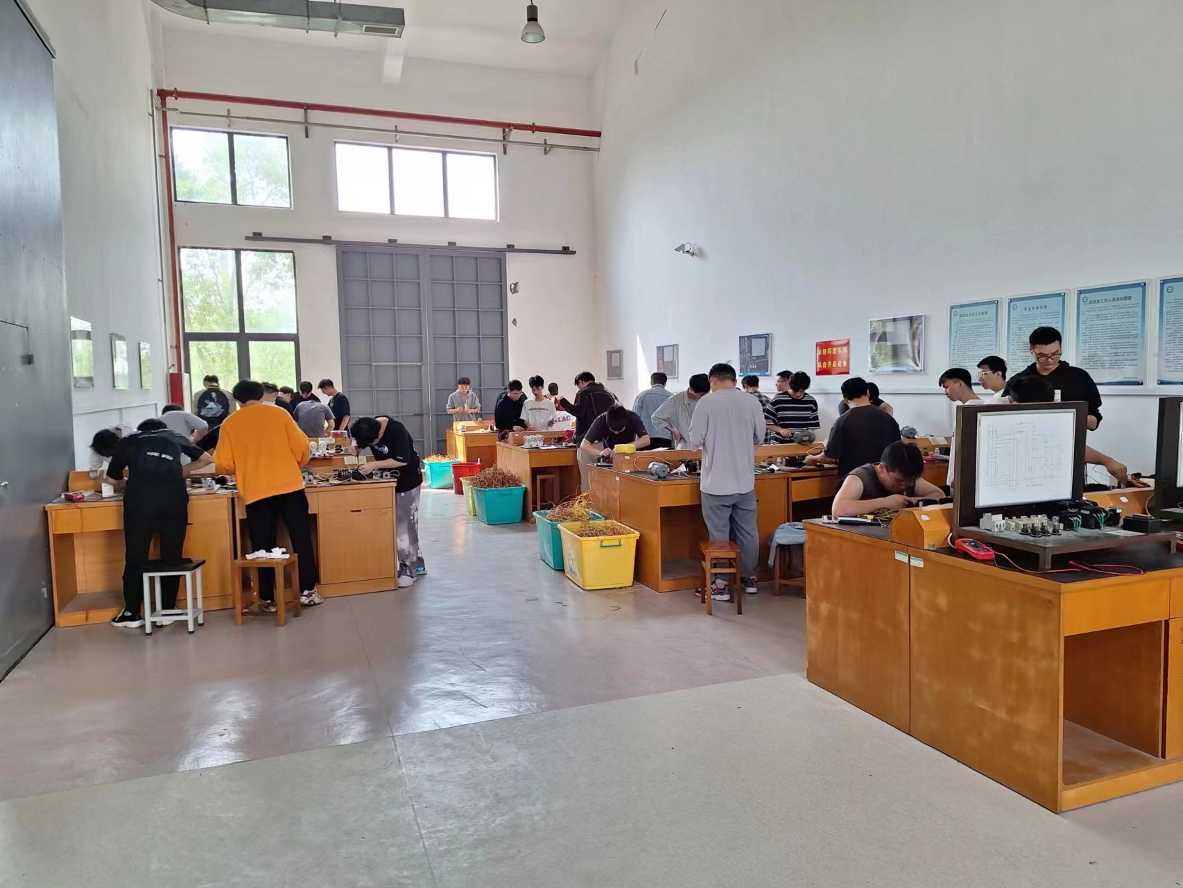 中心下设机加工实训室、钳工实训室、电焊实训室、铸造实训室、拆装实训室、电工实训室、船舶电站自动化实训室、电子实训室、电气排故实训室、PLC与过程控制实训室等10余个功能不同的实训室,总面积3000多平方米,设备总价值600余万元,中心依托学院和专业,形成了一支由教师、实验师、技术工人组成的具有丰富实际操作技能的实训师资队伍,形成了集基础训练、先进技术训练、创新实践训练为一体的实训教学体系,每年有10余个本科专业1000余名学生在中心完成不同层次和不同类型的的工程训练及创新学习。